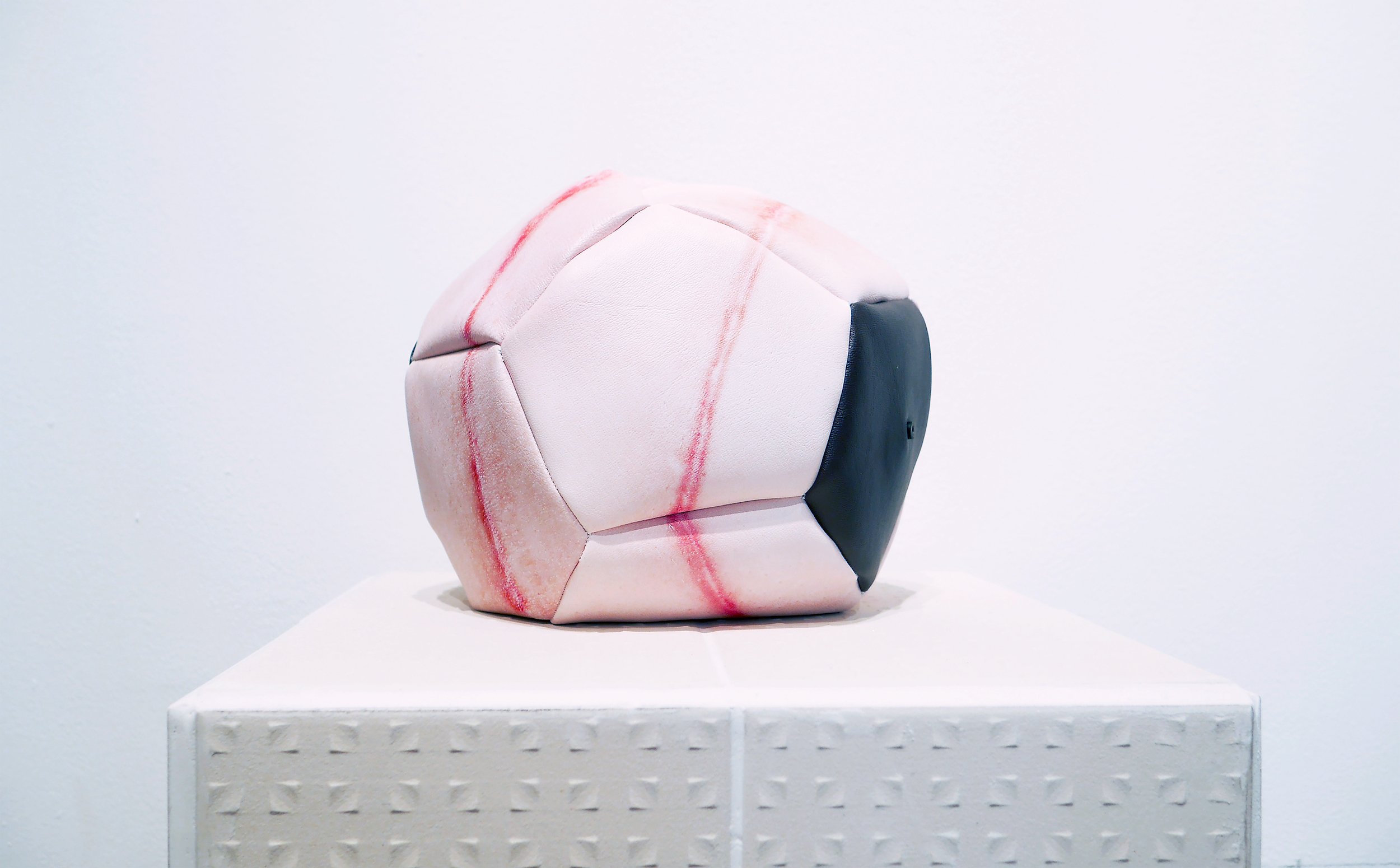 The space is dominated by 'Give Us Our Roses While We're Still Here’, an 8ft memorial which features the names of 140 trans+ footballers from grassroots teams across England, Scotland and Wales. Elsewhere, in the work ‘Stigmata’, Larsen reflects on their experience of recovering from gender-affirming surgery in the weeks following the FA’s policy update with a football sculpture covered in scars. In 'Communion', Larsen evokes the deep sense of care that can be built through ritual practice with 11 concrete casts of LED powered tea lights, which are often lit as devotional or celebratory acts within multiple faiths, arranged in the Lionesses’ Euro ‘25 winning 4-3-3 formation.